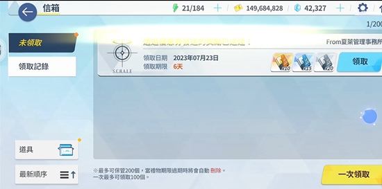 5、兑换的奖励会自动发放邮箱,记得前去领取。