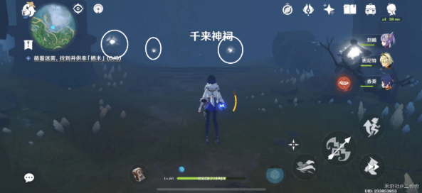沿着白色鹤观的「雷石」往地图北方向走,前往供奉「栖木」,「栖木」长出树叶,附近的雾散去