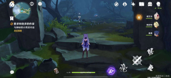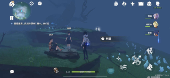 不太看得清路的话,就往地图的西方向走,快到任务点附近再往地图的北方向走,抵达目的地后,与中间的阿瑠对话