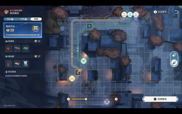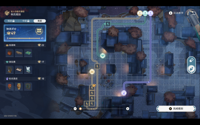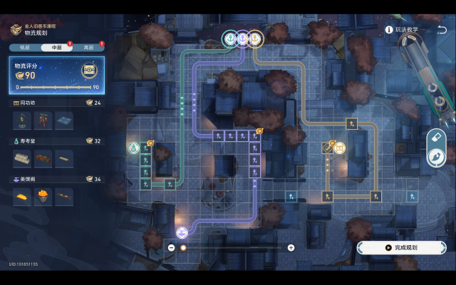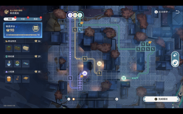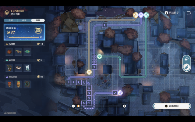 完成所有的主线和任务后,回到会长处,再次开启物流规划,这次评分升级了,按下图规划来即可