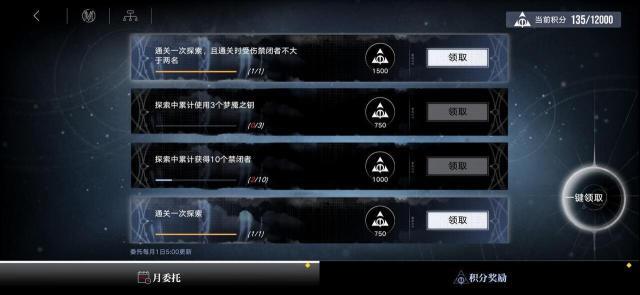 月委托为梦魇积分的额外获取途径,每月1号5:00将重置月委托中的任务,局长可通过完成月委托快速获取大量梦魇积分。