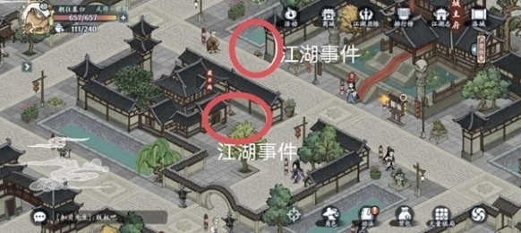 7、在城主府门口可以发现两个江湖事件。