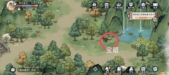 1、在山泉旁边的树下发现一个宝箱。