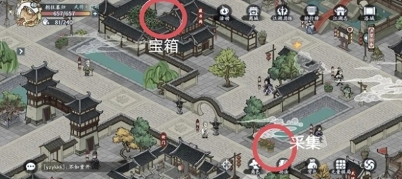 8、城主府对面有一个宝箱,并且在水池旁还有个采集。