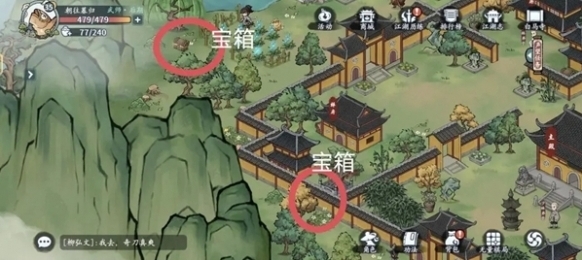 5、接着往里面走,在城墙附近可以发现一个宝箱和一个江湖事件。