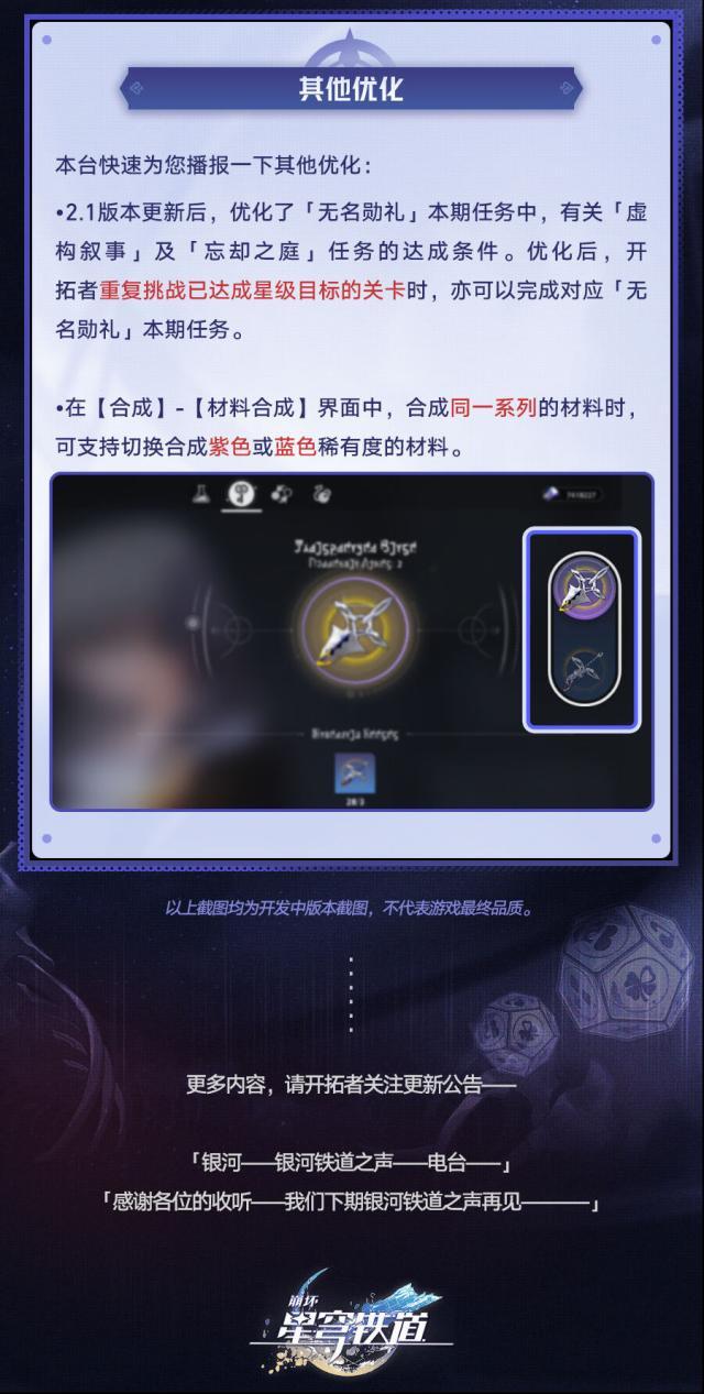 2.1版本 「狂热奔向深渊」即将上线–本期银河铁道之声的主题是–更新电台!本期节目将会给开拓者介绍2.1版本中部分优化与新增功能。一起来看看吧~