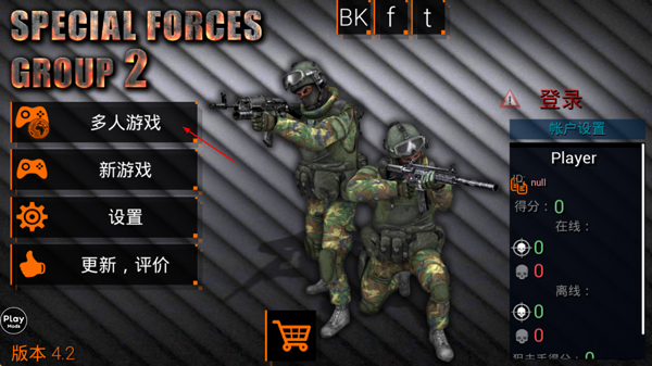 1、打开特种部队小组2手游,点击游戏后点击多人游戏;