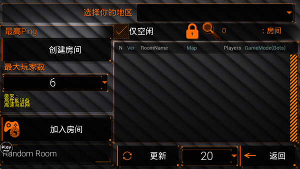 3、进入后,玩家可直接加入其他玩家创建的房间,亦或者自己创建房间;