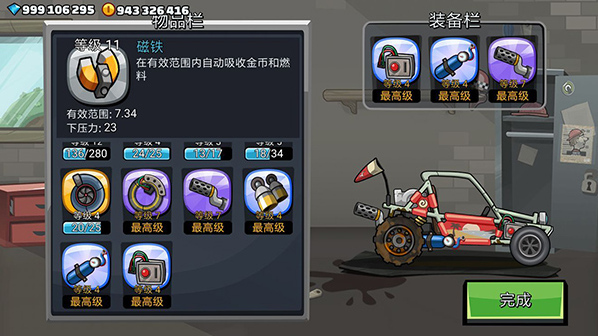 游戏中不管是购买车辆、解锁关卡、升级配件都需要大量的金币,所以游戏中尽量多收集金币吧。因为在行车的物理作用下,车速、角度,以及玩家的操作稍微的出现了问题,就会是金币收集受挫;所以切忌可以的去收集金币,否则,车毁人亡势在必出啊。