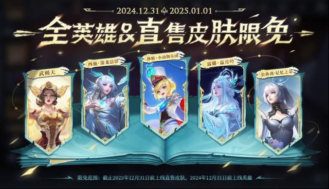 全英雄 全直售皮肤限免限免持续时间:2024年12月31日0:00-2025年1月1日23:59