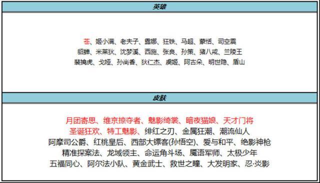 此外,苍英雄及伴生皮还将加入碎片商店开放兑换