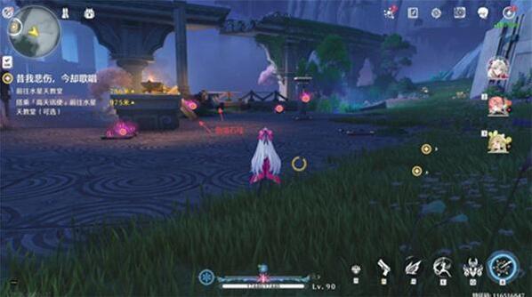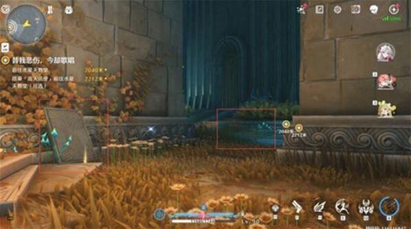 2为石碑解密宝箱,来到标记点变身寂寞小姐按照1234的顺序将污染球吸收掉后,再将图中两处标记的倒塌石碑扶正后解密成功(1精密奇藏箱)如下图