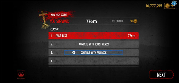 选择道具之后,玩家点击"PLAY"即可开始游戏,在前进过程中,屏幕左上角会记录已经奔跑的距离,直到人物角色死亡,