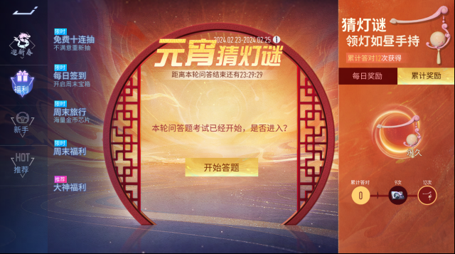 2月23日-2月25日,车手们在飙车之余别忘了来参加速度节“元宵猜灯谜”限时活动,每日10道传统灯谜挑战,答对其中6题即可领取金币奖励。不仅如此,累计猜对一定数量的灯谜还可以获得包含全新手持-灯如昼在内的丰厚奖励~