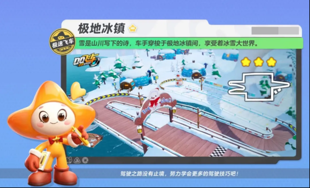 极地冰镇的赛道中赛道两侧被围上了栏杆转弯的地方都设有醒目的提示牌看提示牌可以知道大概什么时候转弯多观察小地图,也能提前预知弯道的位置可以有效避免漂移过弯时撞上栏杆哦~