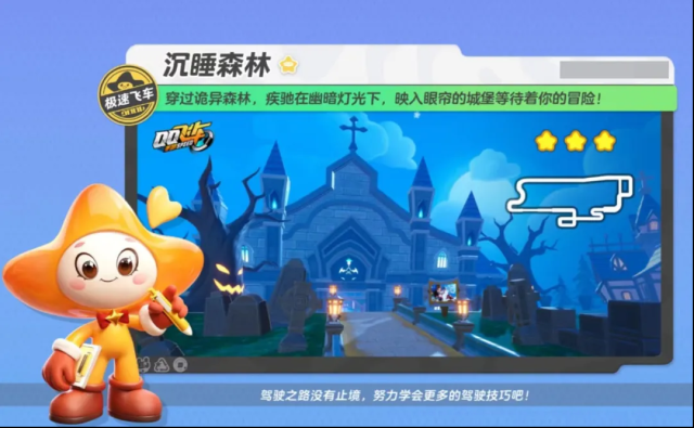 诡异的南瓜和大树守在赛道的两旁映入眼帘的古堡似乎藏着许多秘密当森林陷入沉睡星宝穿过静谧的森林,疾驰进入古堡