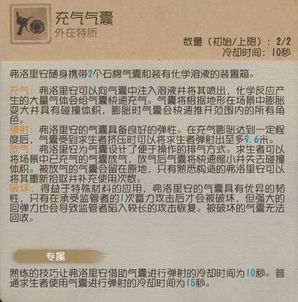 有时候气囊丢的时机恰好是可以挡住飞行物,同时自身利用气囊进行位移,和监管者拉开距离。