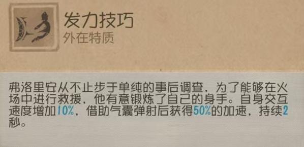 火灾调查员作为牵制位时,“膝跳反射”的板窗交互后加速配合火灾调查员的充气气囊弹射加速能使其可以和监管者不停的拉点位移,延长火灾调查员的牵制时间。“防御机制”使得火灾调查员在受伤时交互速度更快,大大提高了与监管者板窗交互博弈的能力从而延长牵制时间。“鸟笼效应”可以在被挂地下室的时候,使火灾调查员迅速脱离地下室,增强火灾调查员在地下室和监管者的博弈能力。