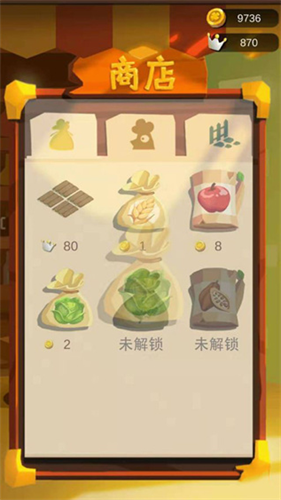 2、【奖励】玩家在田地里种的蔬菜之一可以得到一定量的金币,所以可以买到其他的种子。