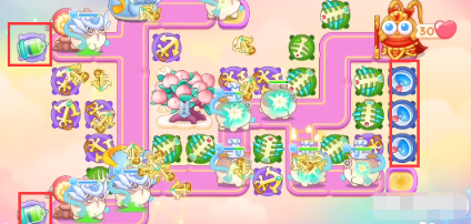 3、先开中间障碍物,开完之后向两侧开,空出的位置放置鱼刺和船锚,如下图。