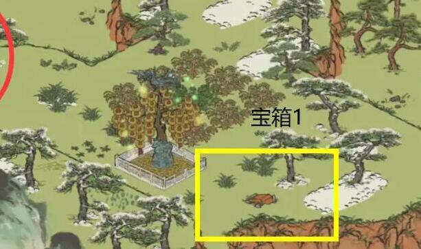 第三个宝箱在如图所示的左上角的角色的旁边。