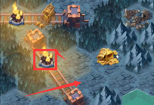 7、我们获得大宝箱后朝着右侧移动,控制装置移动火把消除周围鬼火营地。