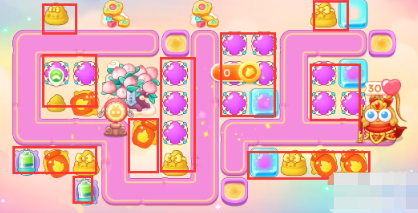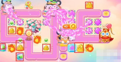 2、开始的时候在中间放置一个满级魔法球,右下角一个火炮,火炮清理上面障碍物。