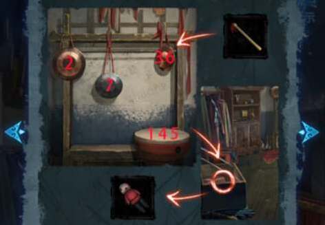 11、根据报纸线索使用小棒子按如图顺序敲击乐器,然后大衣箱中拾取布娃娃。