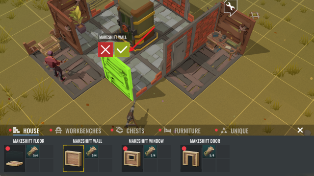你的地堡周围是一片由不同强度的墙壁组成的被毁建筑的废墟。一旦你掌握了基本的生存技能,就可以修复和加固墙壁,并安装制造站或宝箱来储存你的物品。建造一个庇护所,开始你的生存之旅吧。