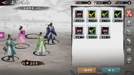 拥有不错的侠客之后,我们就可以根据侠客的属性组建自己的初始阵容。游戏分为掌、剑、力、气、技五中职业,前期阵容以平衡为主,最好每个职业的侠客都能有一位在阵容中。组建好阵容后,我们就可以对侠客进行强化了。点击屏幕下方的侠客按键,进入侠客选择界面,选择我们要强化的侠客进入强化界面。