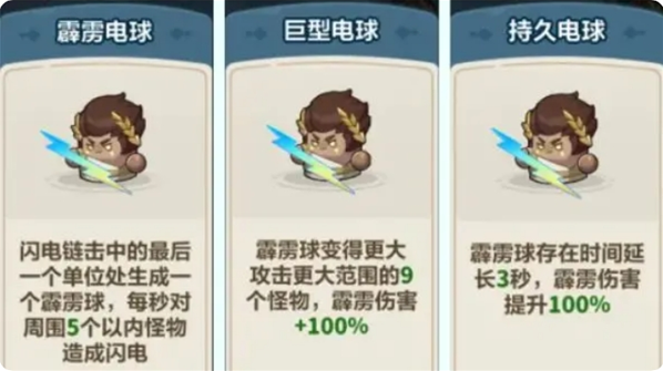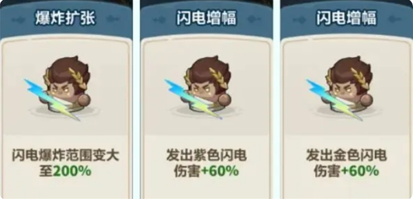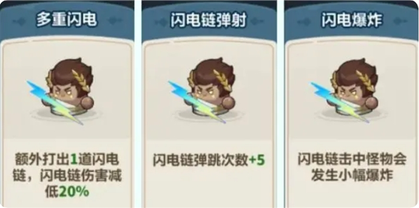 选择下列6个词条分别可提升闪电之子的闪电链数量弹射次数爆炸加成伤害增幅。推荐优先级:闪电链数量>弹射次数伤害增幅>爆炸加成。