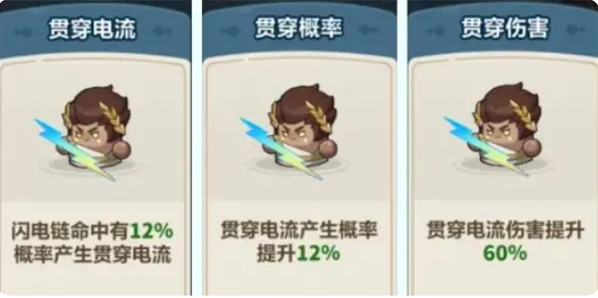 链式连锁(大招):闪电之子相邻时,每次弹射有50%概率产生赤色闪电。赤色闪电会弹跳3次,继承所有强化效果。