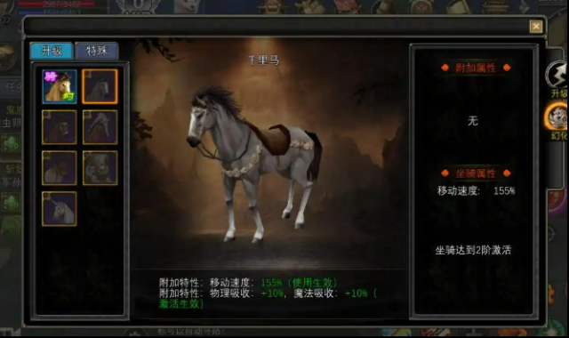 接着是骑宠,它们最吸引人的地方是能提升你的移动速度,战斗时也能将它们的属性加成到角色身上。骑宠的阶级越高,提供的加成也就越强,骑在它们身上感觉分分钟像个无敌战神。最后是跟宠,虽然它们的主要作用是为你提供一些额外的属性加成,但它们的拾取道具功能也非常实用,帮你节省不少时间,让你专心打怪。