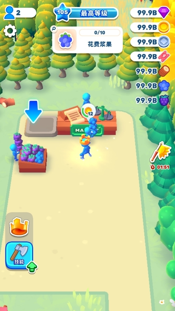4、除了伐木外,还可以去采集各种果实,通过商店售卖就能够赚取金币。