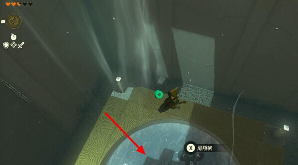 穿过圆形转盘后收起滑翔伞,砸碎冰面进入更下层区域。