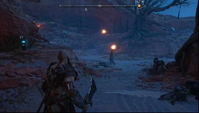 如图所示位置可以看到宝箱,使用连锁爆炸可以点燃火盆,有两个火盆是在外面的,一个是在里面的,小伙伴们要注意。