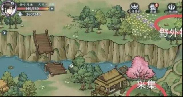 3、宝箱在中间,藏宝图在左下角,野外物资在上方,采集在右下角。