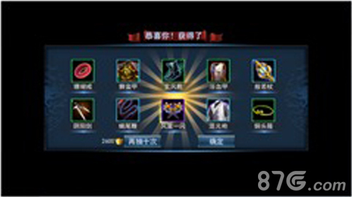 天赐神兵是获得高级装备的快捷方法。通过天赐神兵可以随机获得利器,名器,乃至最高级别仙器等级的装备。每22小时可以免费抽取一次。同寻仙捉妖一样,如果一次性10连抽可以节省元宝并保证百分之百至少有一件仙器装备。在获得装备的同时,每次抽取还可以得到用来兑换仙器装备的神兵碎片。