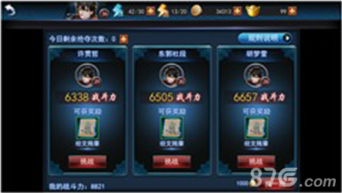 抢夺经书是获得游戏内经文的主要方式,经文可以为自己的战阵提供强力BUFF。每天可以在抢夺经书中获得6次挑战次数,也可以选择用元宝获得额外的挑战次数。玩法为双方英雄对战,一分钟内全灭对手者获得一局胜利,最终采取三局两胜判定胜负。胜利后获得经文,而下一批匹配到的对手也会有更强的战力。击败越强的对手,你所获得的经文也就越来越稀有。