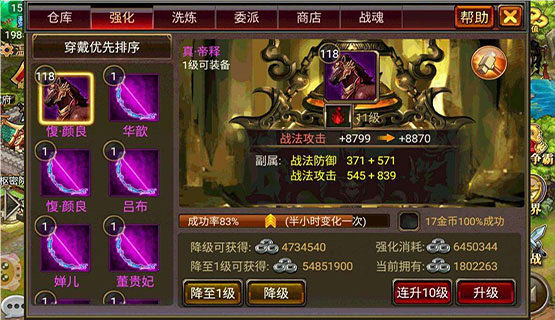 已获得的神器可以通过洗炼提升副属性,副属性仅对主公有效。