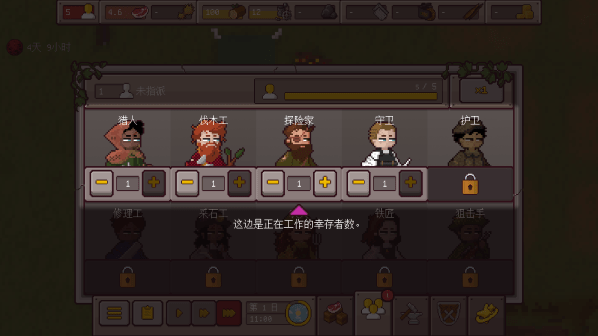 9、你可以在幸存者这里为他们安排工作,点击头像可以查看相关的信息。