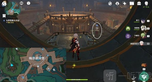 1、前往梅洛皮德堡,然后找到正在绘画的NPC格内薇芙,节日与西北方向的布瓦列特进行对话。