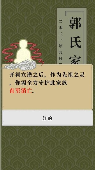 1、玩家将扮演中国古代家族的先祖之灵,从秦朝开始守护自己的家族。通过设置家训,家族人外貌特征,能力特征等来创建属于自己的独一无二的家族。