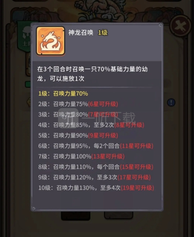 (3)关键技能的需求星数,这里以召唤神龙举例