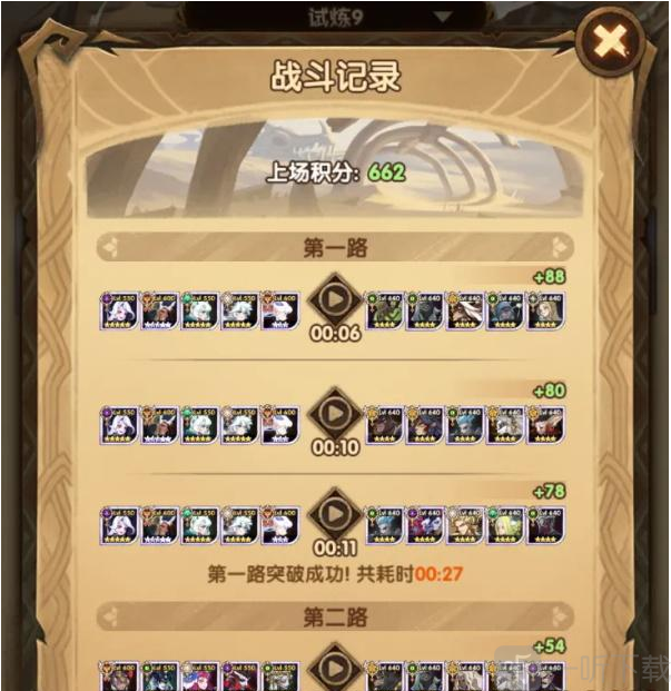 10.也可以自行在排行榜中,切换试炼的关卡,按照上面的阵容就可以顺利通关龙隐之地龙骨试炼啦,还是有难度的。