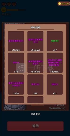 爬塔注意攒金币,如果想爬500层完成成就需要攒15000以上(想爬塔保险点就多攒点)