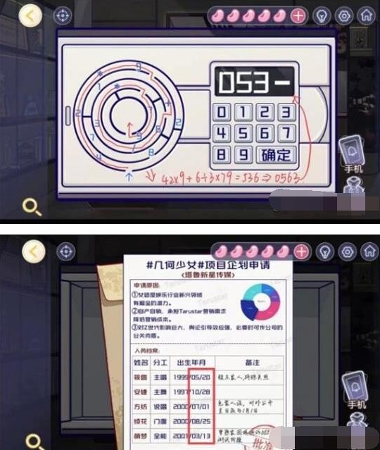 13、从会议室桌子上拿到半花瓶水,导入饮水机,用马克杯接热水,杯子上显示出Mr、Chu生日10、23,将五位成员和Mr、Chu的出生月日加在一起,得到四位数的登录密码4410。