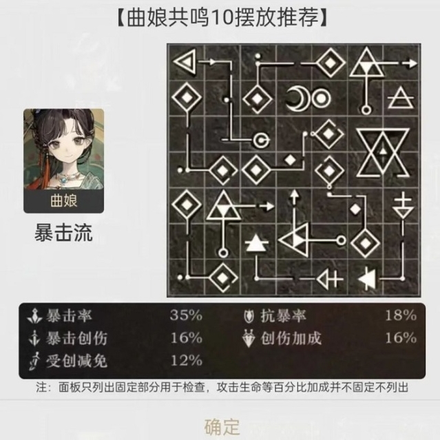 曲娘的小技能和大招倍率无疑是高于标准值,而且吟诵卡成功触发是算两段额外行动的(37狂喜),这使得曲娘与37组队(4人本非常推荐)可以打出高频追击(基本上是1回合1追击),即使不与37组队,也可以组岩队,自身强度够硬,心相强度够高,大招的机制更是能对群又对单。另外,洞悉天赋获取酒浆是按不同效果的buff数,头上buff越多越好;获取酒奖的结算是在回合结束,而大部分角色在回合结束时不会施加buff,可以放心放在1号位,当然放在3-4号位也是可以的,并且能多一份保障(万一关卡机制给呢)。关于塑造:曲娘0塑即是完全体,塑造提升较大,有实力的司辰们可以抽到2塑,如果卡4塑了建议补满塑。关于面板,曲娘面板和百夫长基本如出一辙,高攻击高暴击技巧,但身板差。