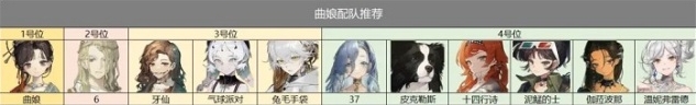 曲娘是一位纯粹的岩系主C,同时拥有多次额外行动的能力。在3人本推荐与6,牙仙组队,如果没有6可以替换成增伤辅助(安安,皮克勒斯,十四行诗),4人本推荐37+6+牙仙+曲娘,37与曲娘可以打出高频的追击,6可以快速为曲娘补充酒浆