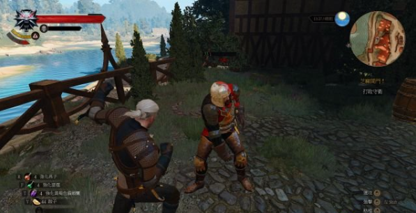 step6.两名守卫把杰洛特带出房子还故意刁难,那么只好用拳头教训他们以后夺回武器。